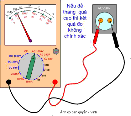 Bước 4 : Nếu ta để thang đo quá cao thì kim chỉ lên một chút , như vậy đọc trị số sẽ không chính xác.