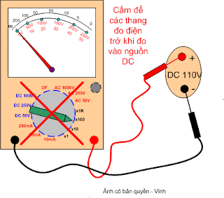 Để nhầm thang đo điện trở, đo vào nguồn AC=> sẽ hỏng các điện trở trong đồng hồ