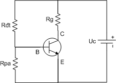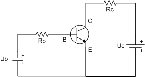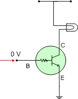 Ta cấp một nguồn một chiều UCE vào hai cực C và E trong đó (+) nguồn vào cực C và (-) nguồn vào cực E. Cấp nguồn một chiều UBE đi qua công tắc và trở hạn dòng vào hai cực B và E , trong đó cực (+) vào chân B, cực (-) vào chân E. Khi công tắc mở , ta thấy rằng, mặc dù hai cực C và E đã được cấp điện nhưng vẫn không có dòng điện chạy qua mối C E ( lúc này dòng IC = 0 )