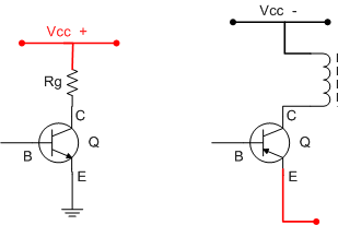 Ta thấy rằng : Nếu Transistor là ngược NPN thì Vcc phải là nguồn dương (+), nếu Transistor là thuận PNP thì Vcc là nguồn âm (-)
