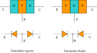 Transistor gồm ba lớp bán dẫn ghép với nhau hình thành hai mối tiếp giáp P-N , nếu ghép theo thứ tự PNP ta được Transistor thuận , nếu ghép theo thứ tự NPN ta được Transistor ngược. về phương diện cấu tạo Transistor tương đương với hai Diode đấu ngược chiều nhau .